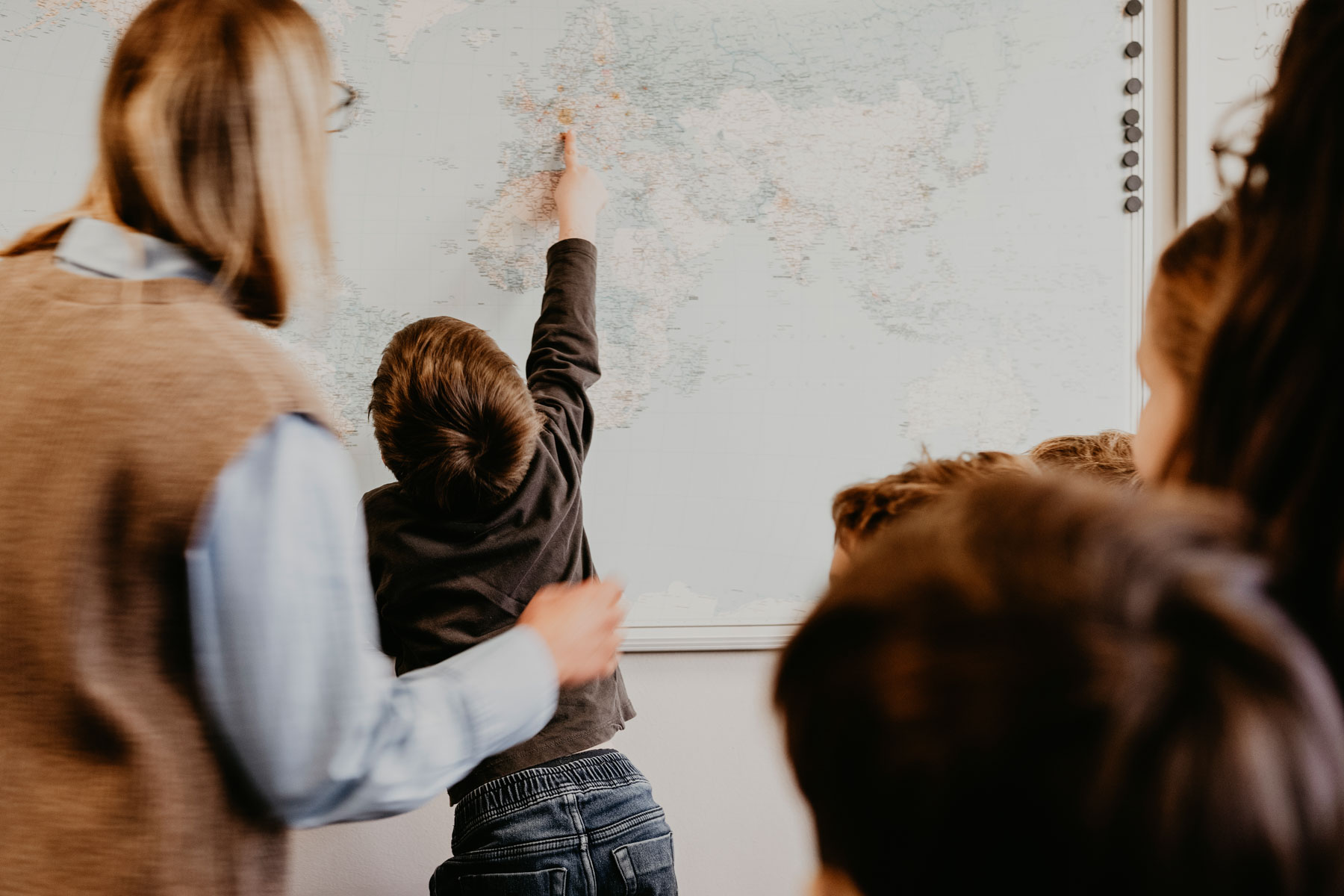Für die Größeren wartete eine weitere knifflige Challenge: das Land auf einer überdimensionalen Weltkarte finden.
