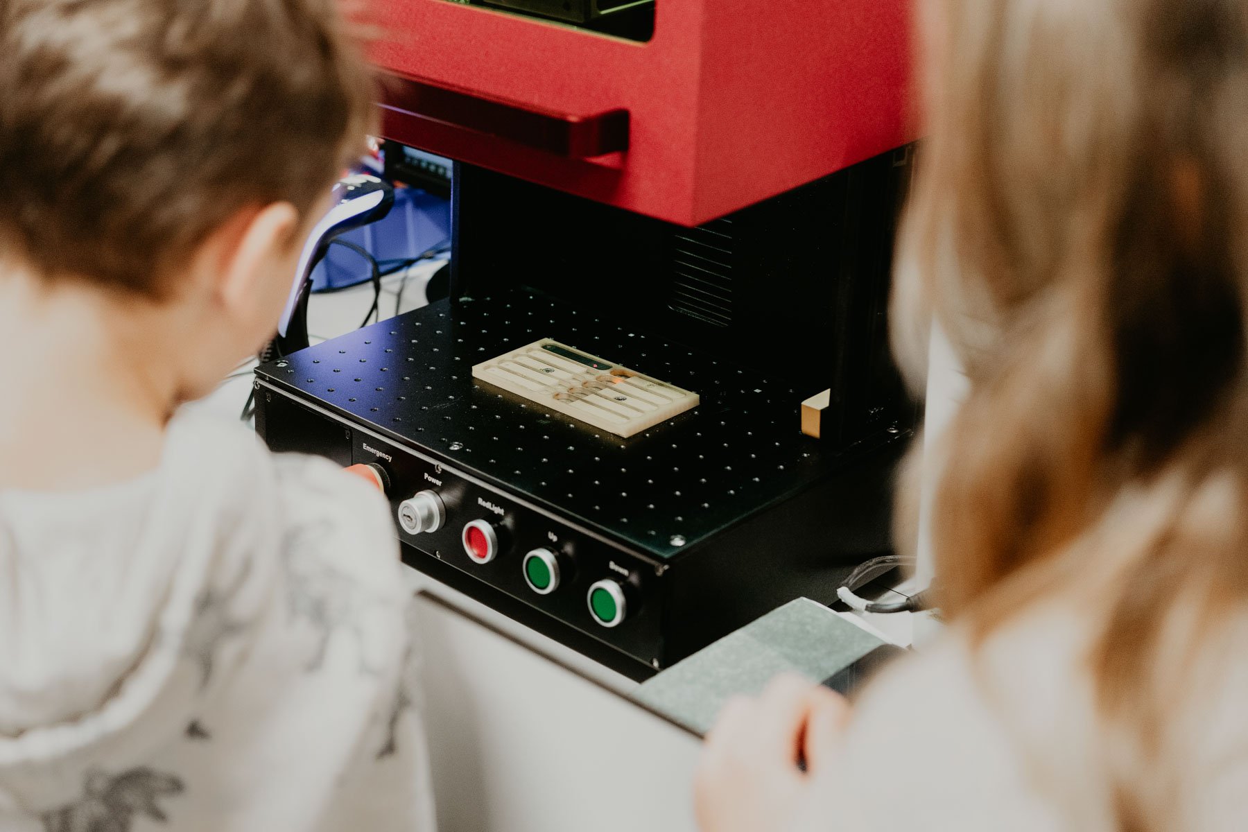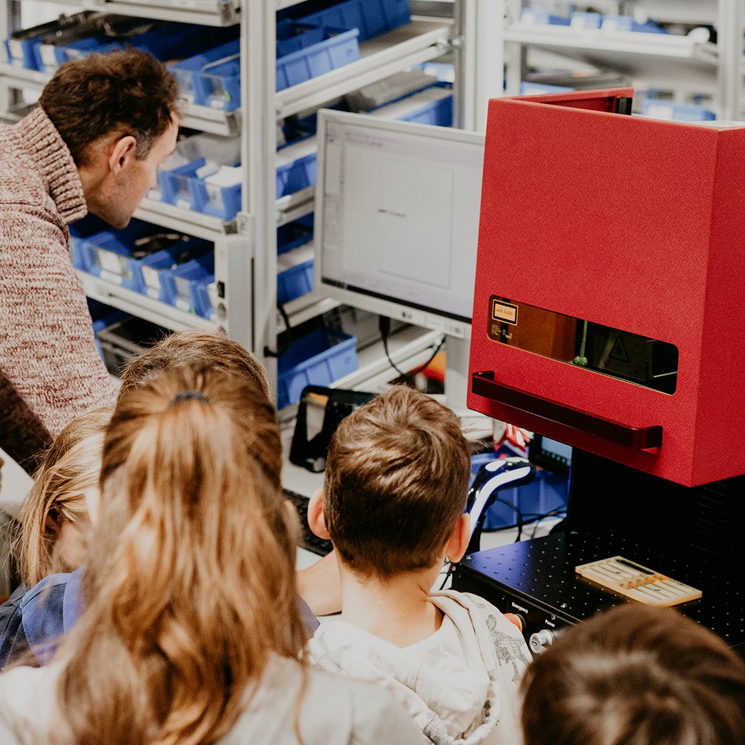 Zusammen mit unserem Sondergeräte-Spezialisten Tobi wurden kleine Metallplättchen graviert. Jeder Name wurde liebevoll eingearbeitet – ein echtes Unikat, das am Ende stolz mit nach Hause ging.