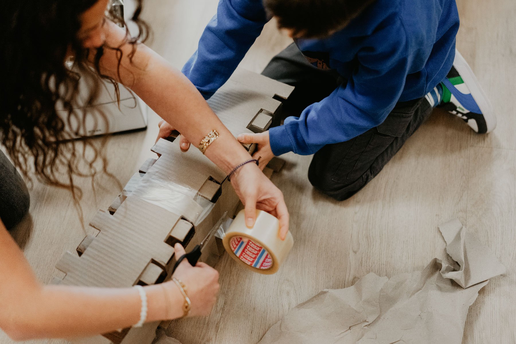 Beim Kartonstapeln war Teamwork gefragt. Wer baut den höchsten Turm, der mindestens zehn Sekunden stehen bleibt?