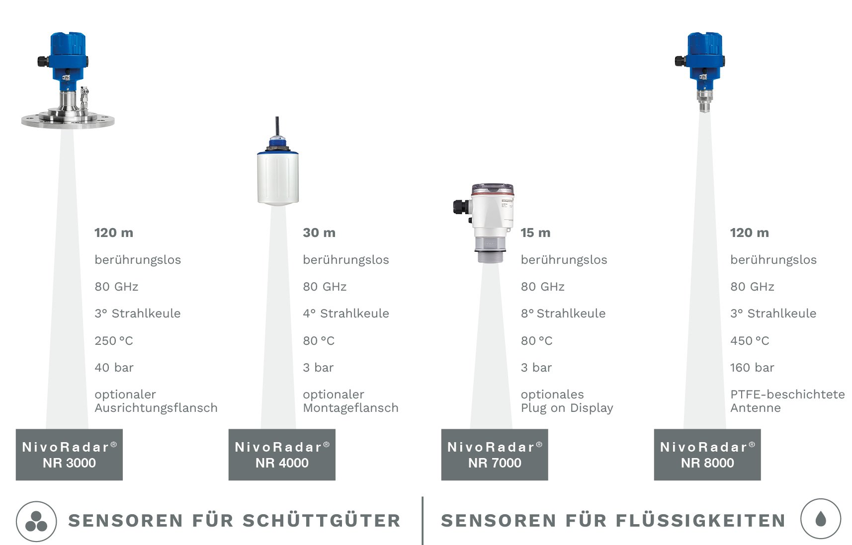 Prozessüberwachung – Berührungslose Füllstandsmessung für zahlreiche Industrien, unabhängig von aggressiven Medien, hohen Temperaturen oder Drücken.
