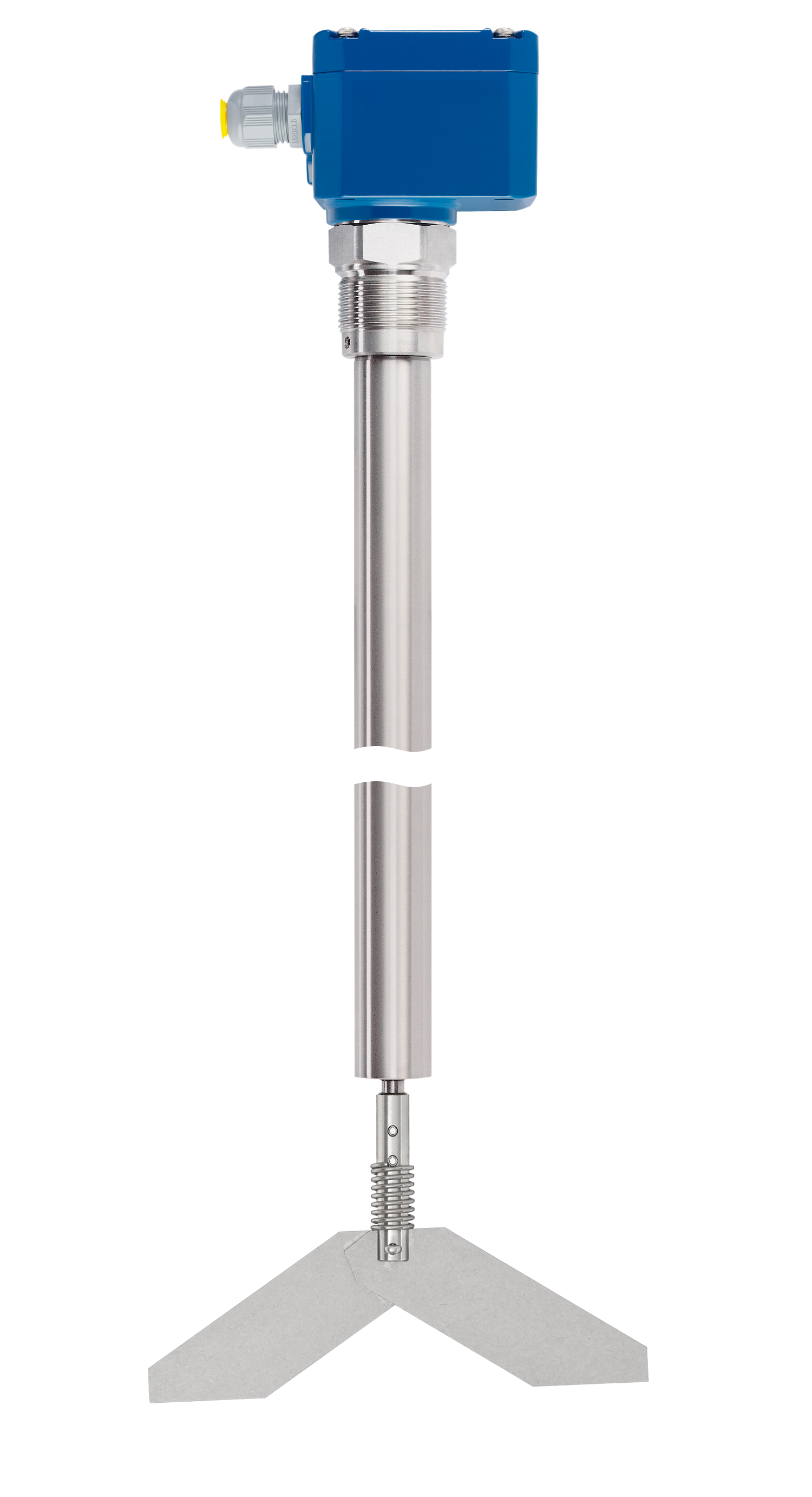 Drehflügel und Rohrverlängerung bestehen aus Edelstahl und sind damit dauerhaft gegen die abrasiven Eigenschaften von PVC-Pulver geschützt. Auch bei langfristigem Einsatz bleibt der Sensor mechanisch stabil und zuverlässig.