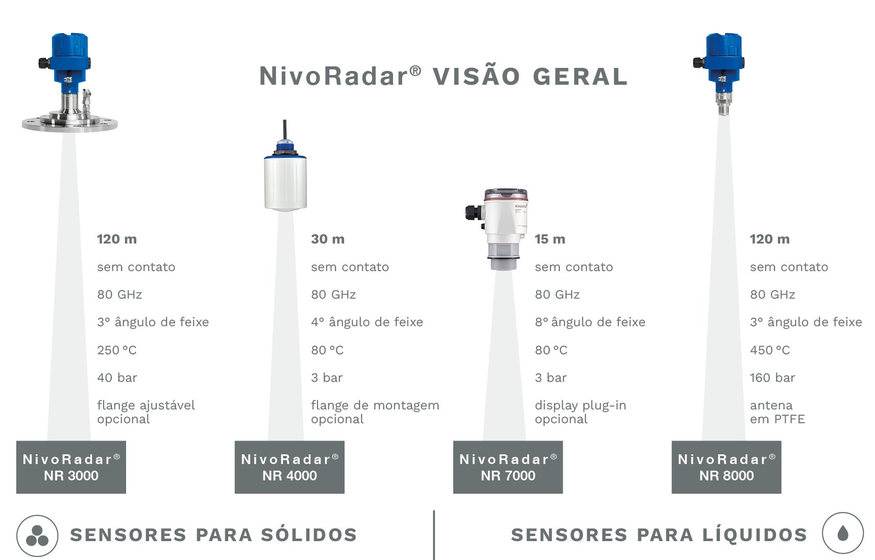 Monitoramento de processos - Medição de nível sem contato para vários setores, independentemente de meios agressivos, altas temperaturas ou pressões.